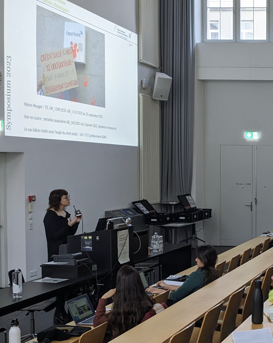 - 20.06.2023, École d’été de la Faculté de droit de l’UNIL La démocratie environnementale, présentation intitulée Durabilité, égalité, mobilisation citoyenne, Lausanne, programme en ligne : https://droit.cuso.ch/?id=3370&tx_displaycontroller[showUid]=6529. - 06.06.2023, Journée d’étude au sujet du livre Le devoir de résister. Apologie de la désobéissance incivile, Institut de Recherches Philosophiques de Lyon et le Collegium de Lyon, présentation intitulée « Les mobiles politiques ne sont pas des motifs honorables »: le positivisme juridique comme obstacle dans les causes de désobéissance civile, Lyon, programme en ligne: https://univ-droit.fr/recherche/actualites-de-la-recherche/manifestations/48805-le-devoir-de-resister-apologie-de-la-desobeissance-incivile. - 28.04.2023, Symposium Environment, Justice, and the Politics of Emotion, presentation avec Mathilde Krähenbühl intitulée Not wanting a child : Emotions as a translation in climat change trials in Switzerland, University of California, Riverside, intervention disponible en ligne : https://youtube.com/playlist?list=PL4yVXgaYlqF8XDNCQNkn1iHg78zcebr1U. - 31.03.2023, Journée d’étude Militantisme écologique, présentation intitulé « Le juge est là pour appliquer la loi ! » : retour sur les mécanismes de dépolitisation à l’œuvre dans les procès de désobéissance civile en Suisse, Université Lyon III, programme en ligne : https://facdephilo.univ-lyon3.fr/journee-detude-militantismes-ecologistes. |